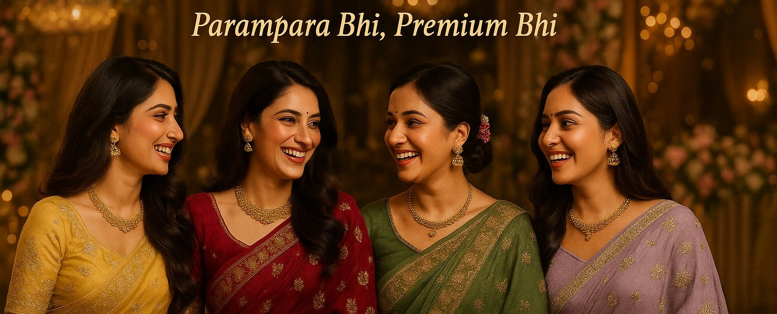 All our sarees are proudly made in India, crafted with love and artistry from our design studios and handwork units across Surat and Jaipur.